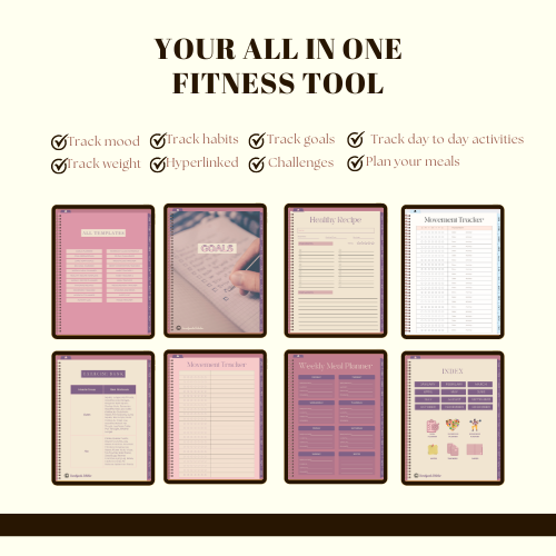 - Daily and weekly workout logs, meal planners, and goal-setting sheets